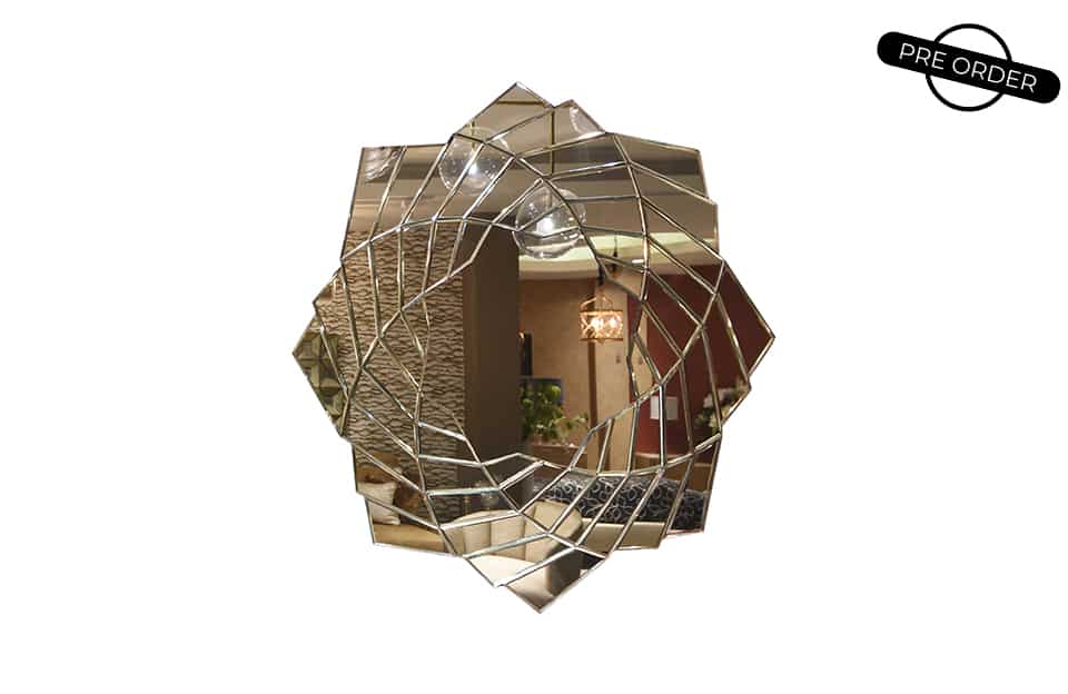 - Irregular polygonal mirror with a fragmented, web-like pattern.