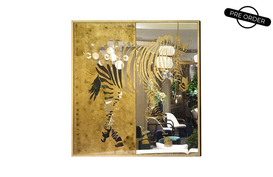 - Rectangular mirror featuring a striking zebra design with gold accents.