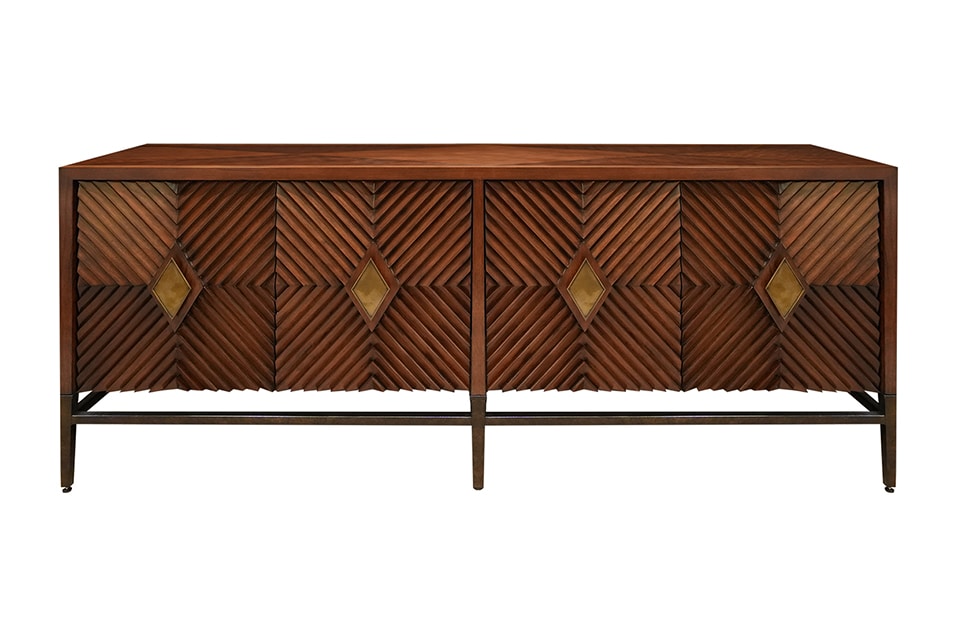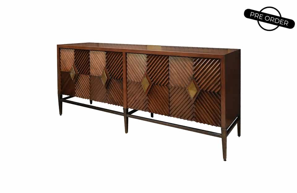- Unique diamond-shaped accents on the front panels